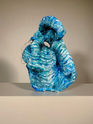 I started out solely focusing on making the form non representational and dynamic. Once I had my form I started thinking about my graphic element. Even though Clive Bell's voice in my head was telling me to make it just about the form, I couldn't help but see some meaning in my form. It reminded me of a cave under the sea, a very organic shape with varying textures. So, when preparing for my visual element I decided I would stick with that theme of the sea and used water-like and bubble-like patterns and the color blue. At the end I added on some chicken wire on as a finishing touch, and it became a piece about pollution.